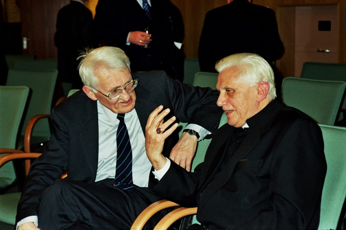 This is the thread that leads, over thirty years, to the 2004 dialogue with Cardinal Ratzinger at the Catholic Academy of Bavaria — a dialogue that the tributes treat, when they mention it at all, as a surprising biographical late turn rather than as the culmination of a project that had been oriented toward this question from the beginning. In that dialogue, Habermas made a concession that the political readings of his work had made almost unthinkable: secular reason cannot generate its own motivational resources. The values that sustain democratic life — solidarity, human dignity, the sense that justice matters, the obligation to those who have suffered — have deep historical roots in religious traditions, above all in the Judeo-Christian understanding of the person. Secular philosophy has not found a way to replicate or replace those roots. He argued for what he called a “complementary learning process” — a relationship in which secular reason and religious tradition each carry what the other needs and each submit to the corrective the other provides. Ratzinger, for his part, conceded that faith must submit to the corrective of reason — a concession that should not be taken for granted coming from the man who would become Benedict XVI.